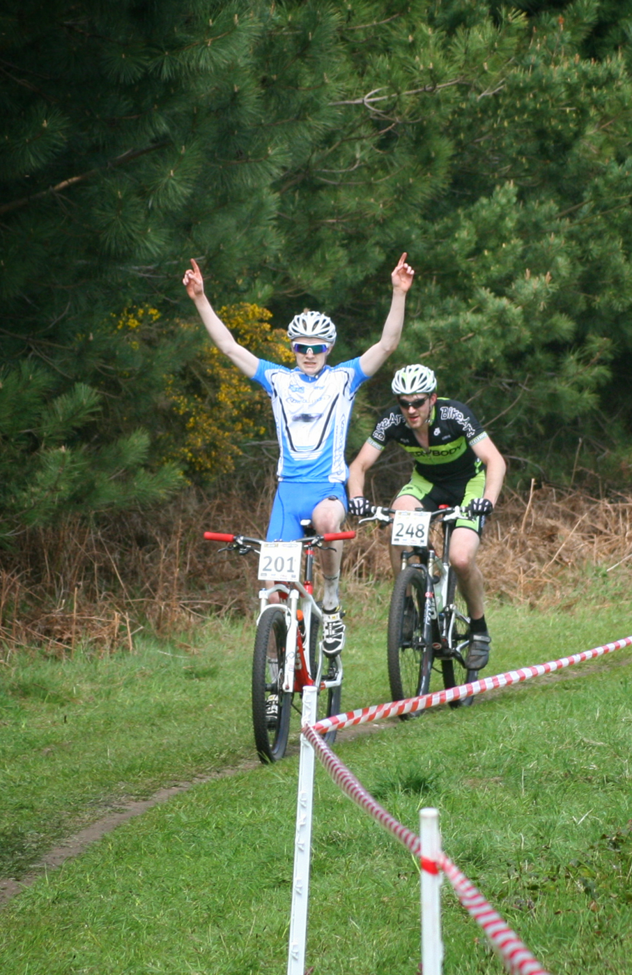 One of the other juniors then dropped of the pace leaving two of us to battle it our for the win. Which lead to some pretty aggressive track-esque style riding, where we'd slow down to little more than a walking pace and then one of us would attack - the other would stay stuck to the wheel and hang for dear life, this inevitably lead to a few close-calls and use of elbows, in a bid to make it first to the singletrack. This style of riding was probably far from conducive to fast lap times, and it certainly wasn't economical use of energy.